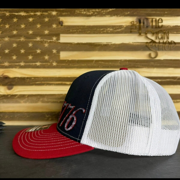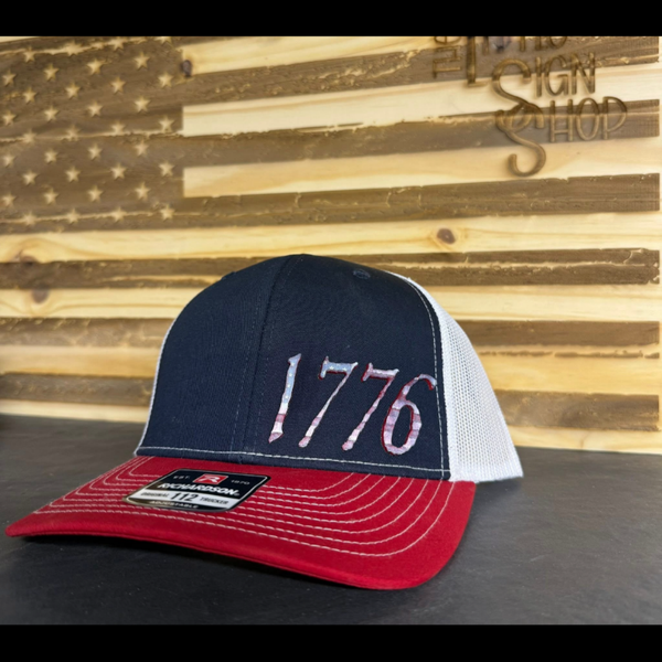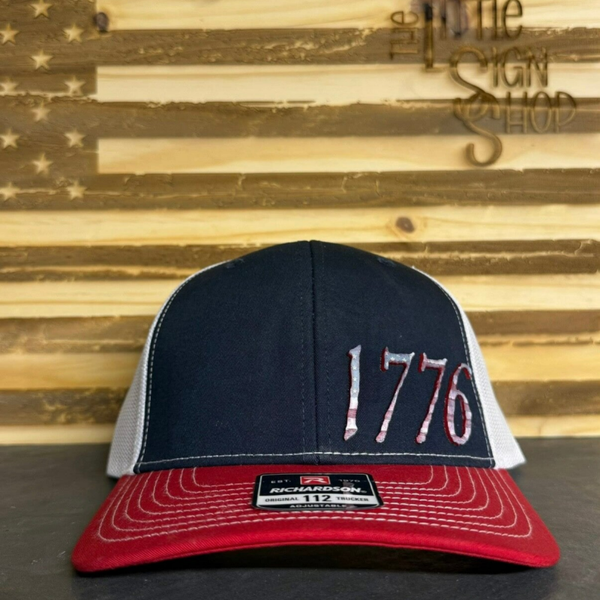 Patriotic 1776 Richardson 112 Hat with trilayer red, white, and blue acrylic patch.