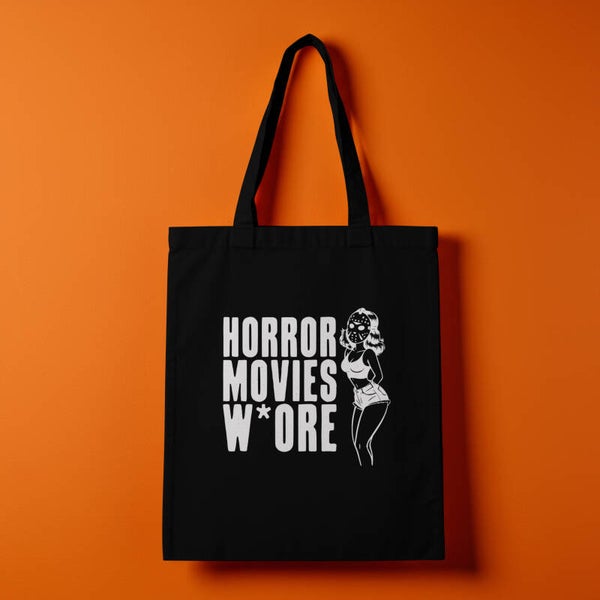 Horror Movies Whore 15"x16" Cotton Tote Bag. Comes in orange, white, or black. Carry all your belongings in style this fall with this cute tote!