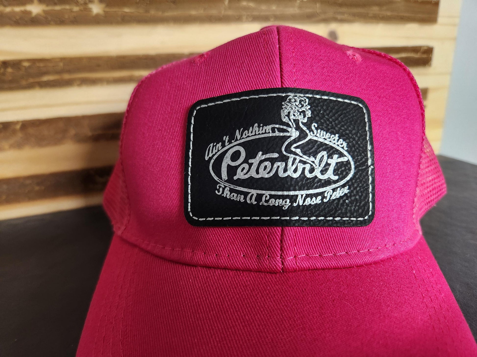 This Ain't Nothing Sweeter Than A Long Nose Peter Trucker Ponytail Hat combines casual style with functional design. Featuring a black and silver leatherette patch, it showcases a chic “pink up girl” theme. The trucker hat’s ponytail opening ensures comfortable wear for all hair types, making it perfect for everyday use or outdoor activities. Durable and stylish, it’s a smart addition for anyone seeking unique headwear with a playful edge.